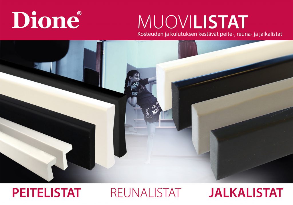Tarjoamme varastotuotteena uudet, kosteuden ja kulutuksen kestävät reuna-, jalka- ja peitelistat vaativiin kohteisiin. Muovilista on mittatarkka ja taipuisa, eikä käytössä ole tarvetta kunnossapitoon. Listamateriaalina on läpivärjätty vaahdotettu muovi.