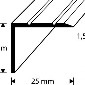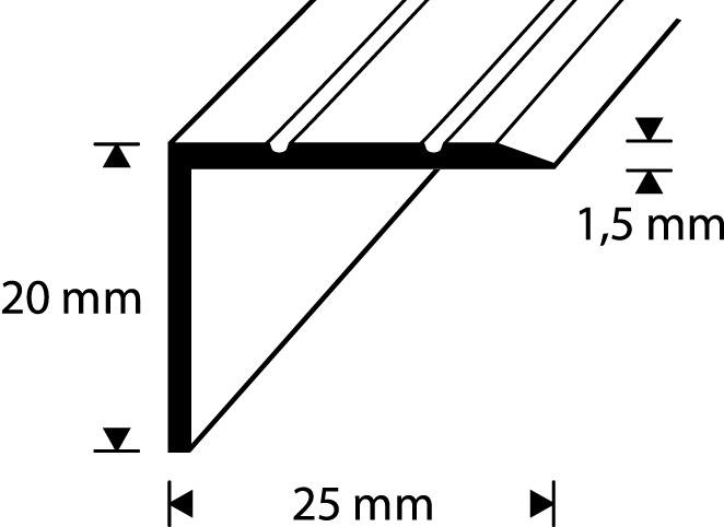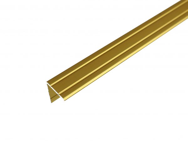 Dione-askelkulmalista, liimakiinnitteinen. Uritettu pinta. Leveys 25mm. Korkeus 20mm. Alumiini. Kulta-anodisoitu. Pituus 2700mm