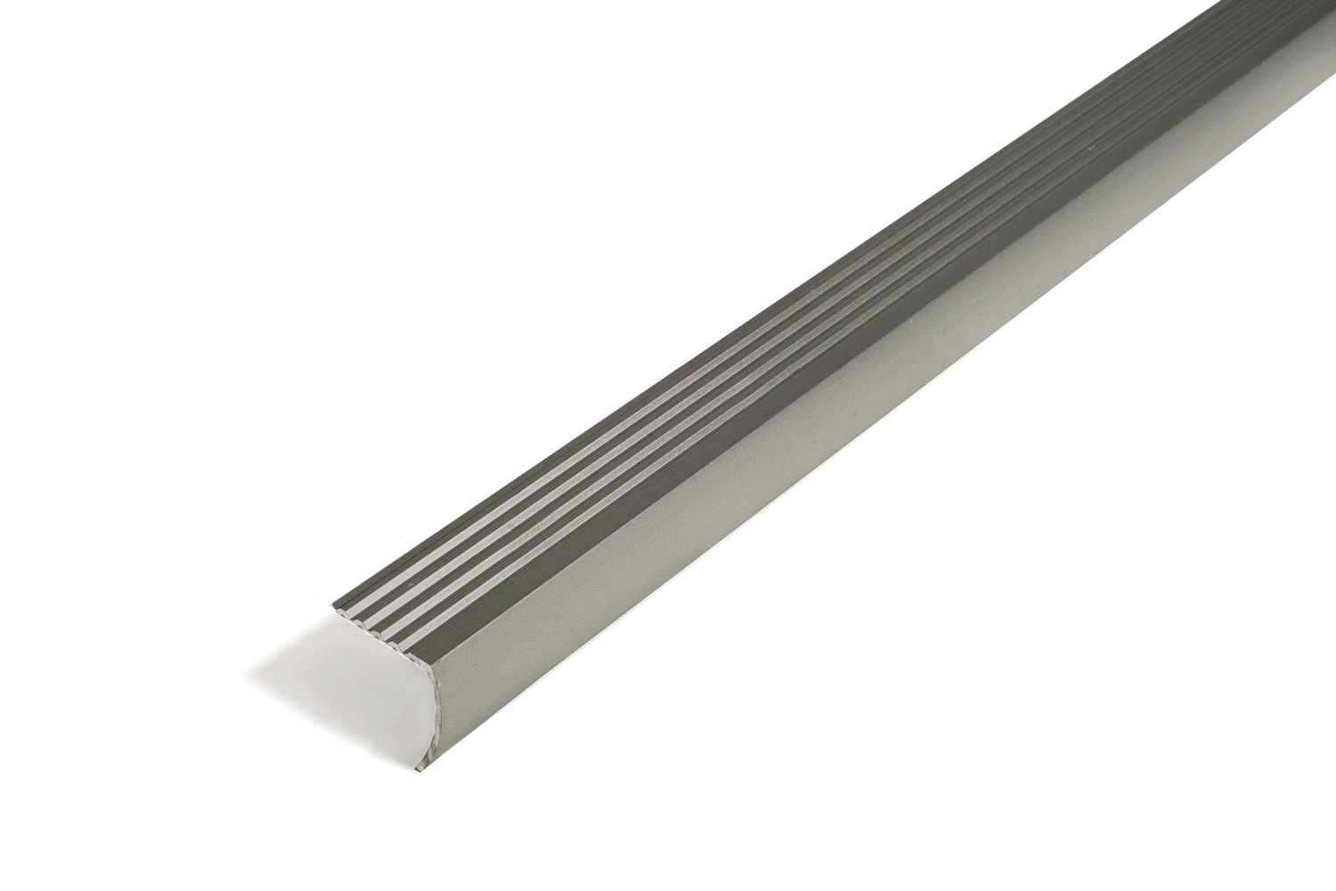Dione-askelkulmalista, liimakiinnitteinen. Uritettu pinta. Leveys 29mm. Korkeus 29mm. Alumiini. Nordic graphite. Pituus 3000mm