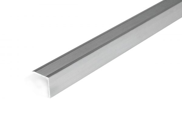Dione-askelkulmalista, liimakiinnitteinen. Uritettu pinta. Leveys 30mm. Korkeus 30mm. Alumiini. Nordic graphite. Pituus 3000mm