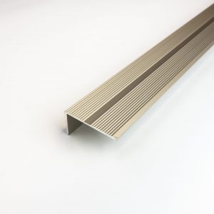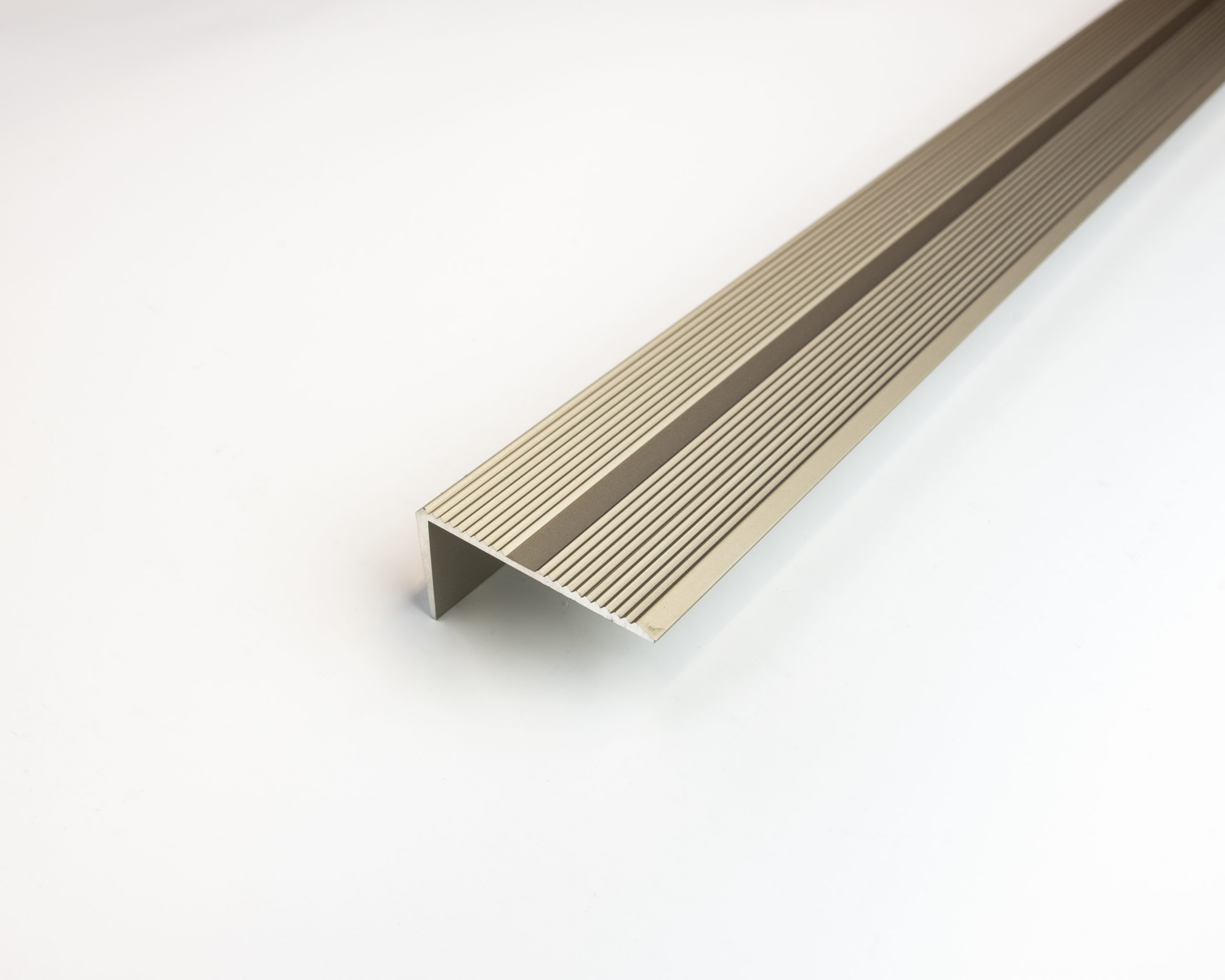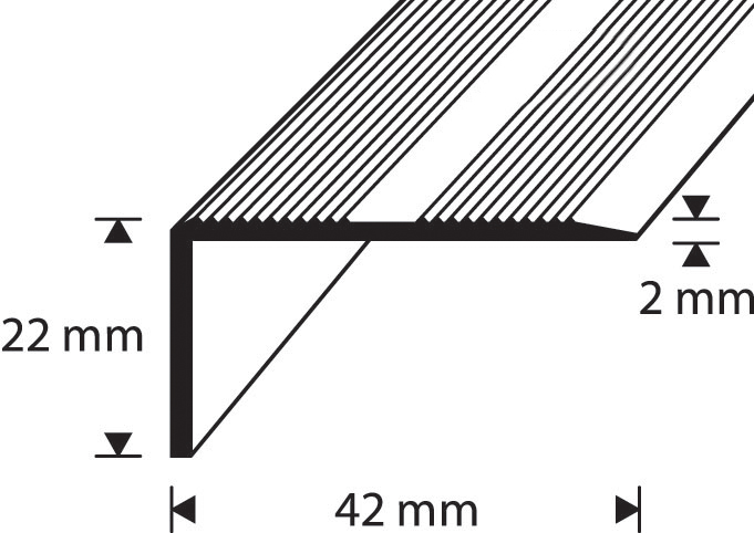Dione-askelkulmalista, liimakiinnitteinen. Uritettu pinta. Leveys 42mm. Korkeus 22mm. Alumiini. Pronssi-anodisoitu. Pituus 3000mm