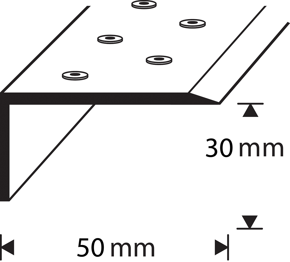 Dione-askelkulmalista, liimakiinnitteinen. Kohokuvioitu pinta. Leveys 50mm. Korkeus 30mm. RST, Hiottu. Pituus 3000mm