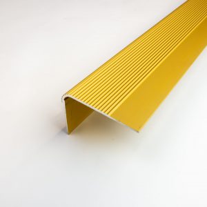 Dione-askelkulmalista, liimakiinnitteinen. Uritettu pinta. Leveys 55mm. Korkeus 43mm. Alumiini. Kulta-anodisoitu. Pituus 2700mm