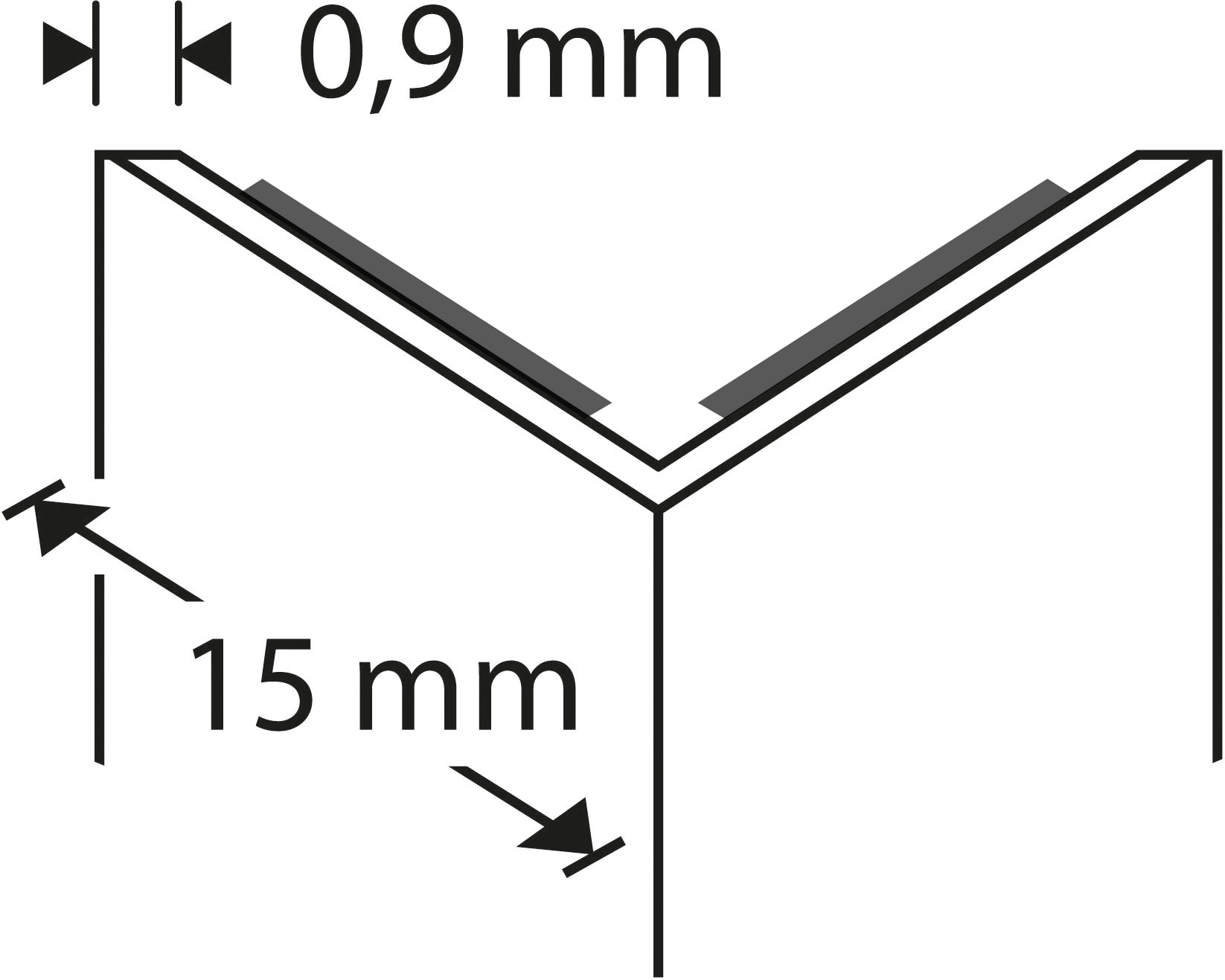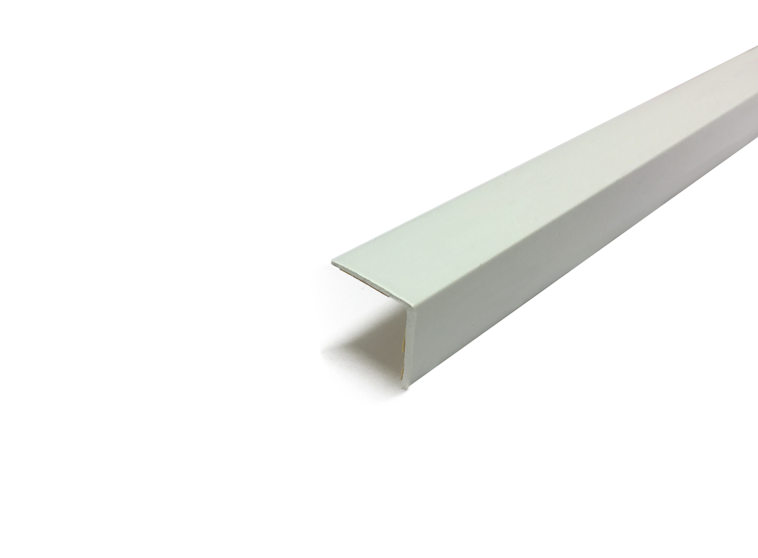 Tape fastening corner protection profile. The plastic corner protection profile shields and finishes external corners. Dimensions: 15x15mm. Colour: white. Length 2700mm.