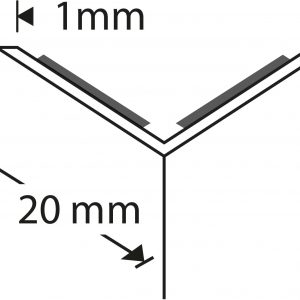 Tape fastening corner protection profile. The plastic corner protection profile shields and finishes external corners. Dimensions: 20x20mm. Colour: white. Length 2700mm.