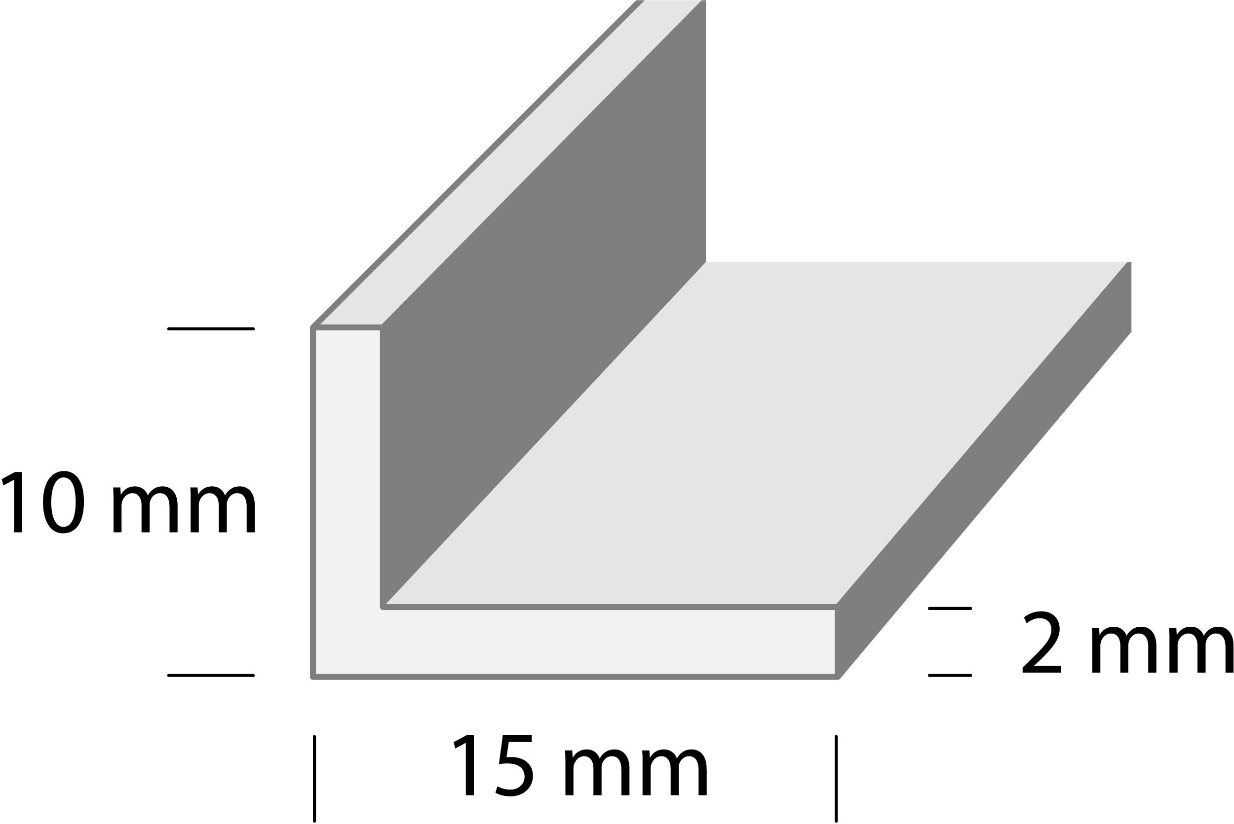Hobby corner profile. Install with adhesive. Width 10mm, height 15mm. Aluminium, colour Carbon black. Length 1000mm.