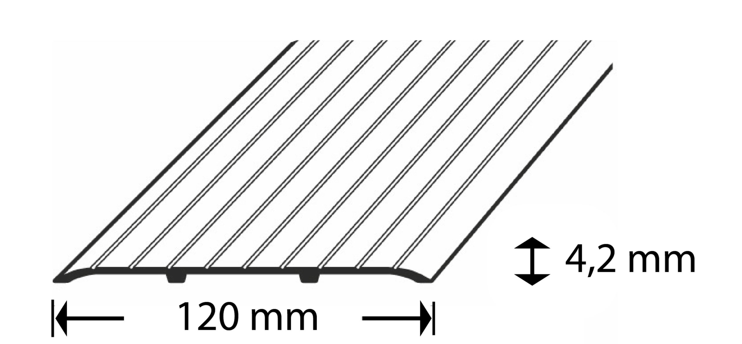 Dione cover strip. Glue fastening. Ridged surface. Width 120 mm. Silver anodized. Length 1,000mm