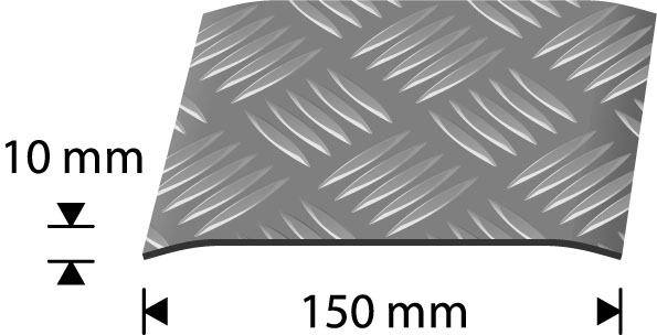 Cover strip with glue fastening, 150 mm, aluminium, teardrop surface. 2,000 mm.