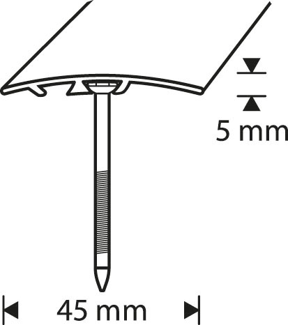 Dione cover strip with a nail plug system. Smooth surface. Width 45 mm. Aluminium. Oak. Length 2,700 mm.
