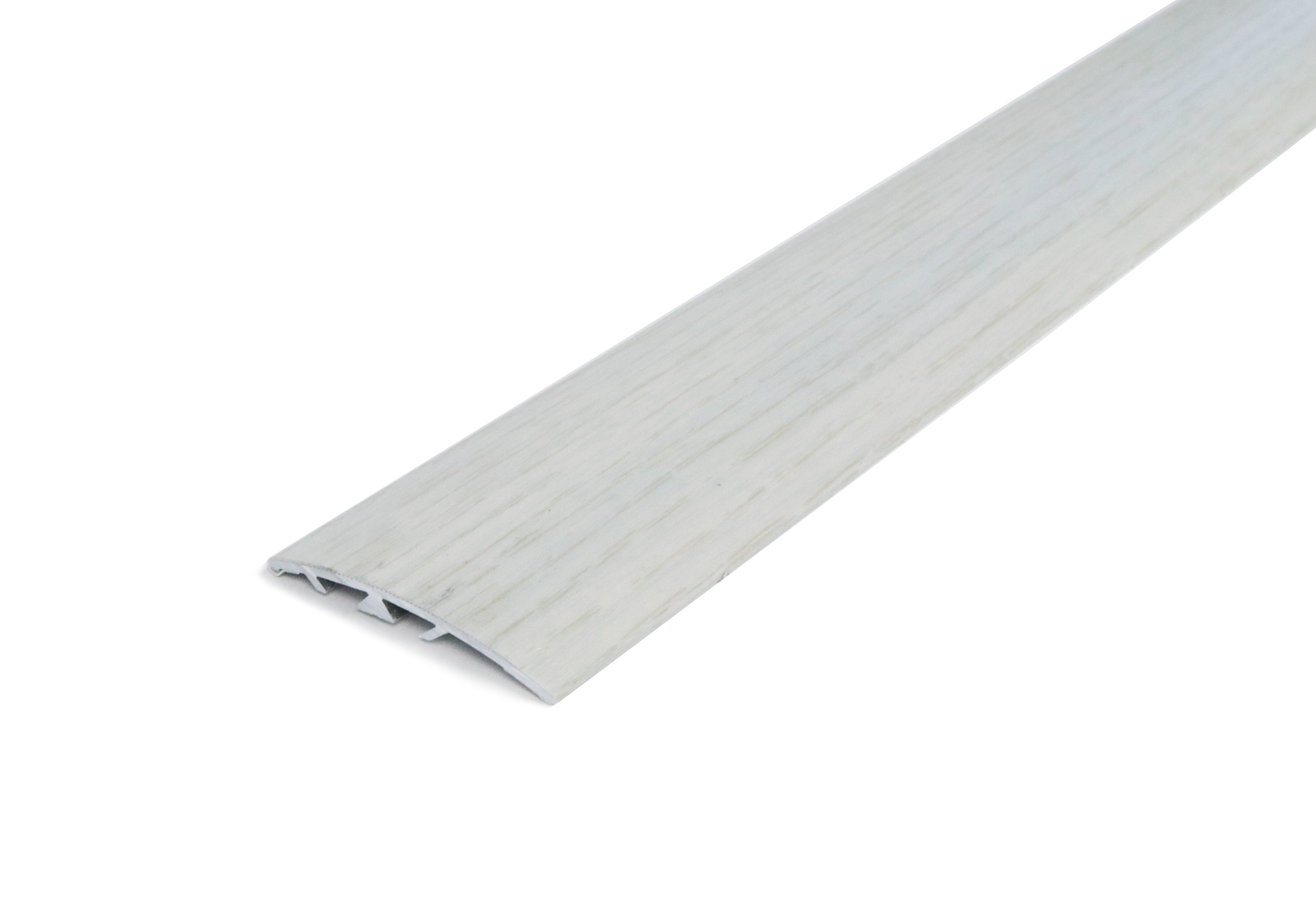 Dione cover strip with a nail plug system. Smooth surface. Width 45 mm. Aluminium. Grey oak. Length 3,000 mm.