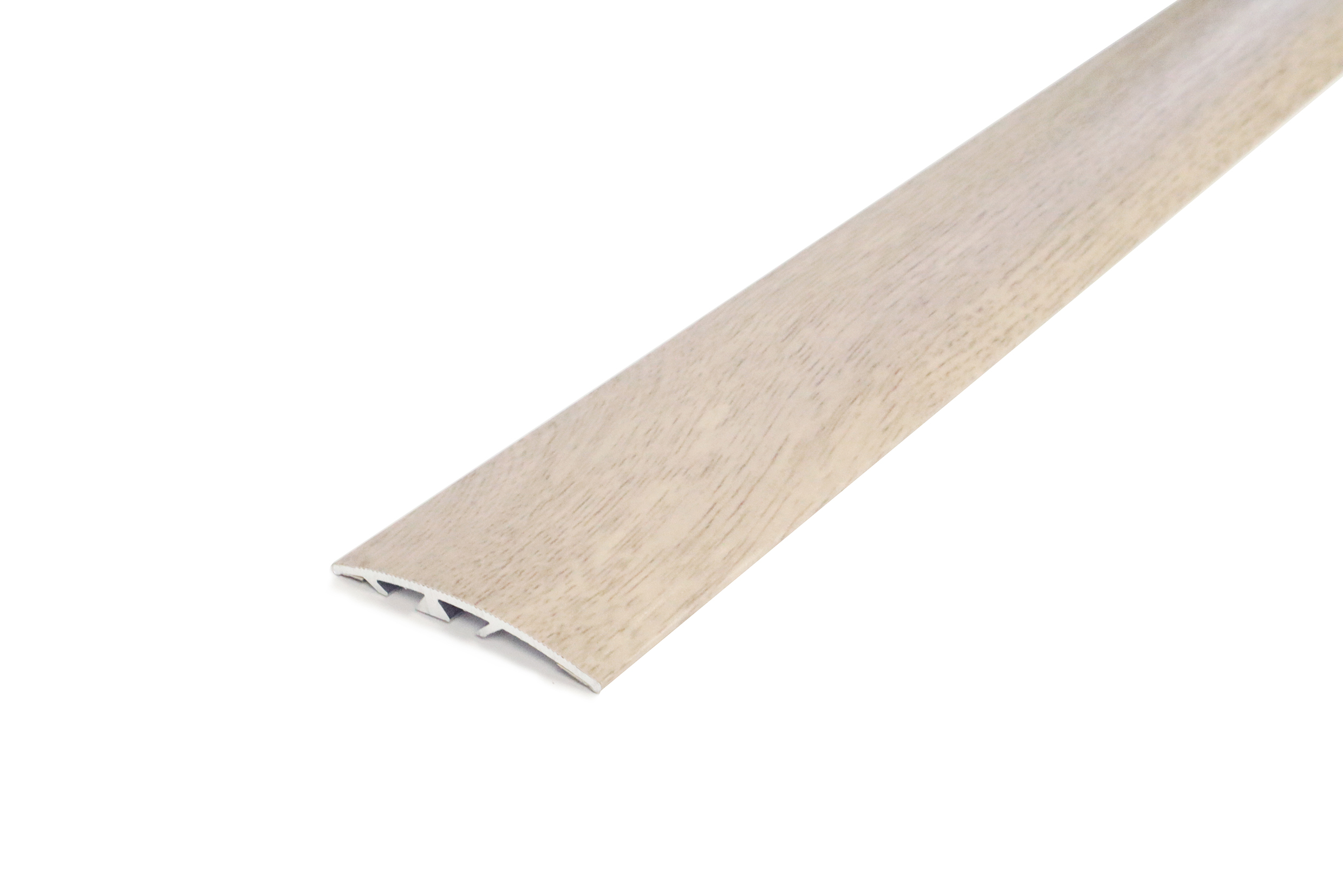 Dione cover strip with a nail plug system. Smooth surface. Width 45 mm. Aluminium. Limed ash. Length 1,000 mm.