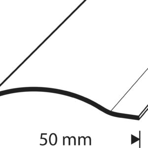 Dione edge trim with glue fastening. Smooth surface. Width 50 mm. Height 0–15 mm. Brushed stainless steel. Length 3,000 mm.