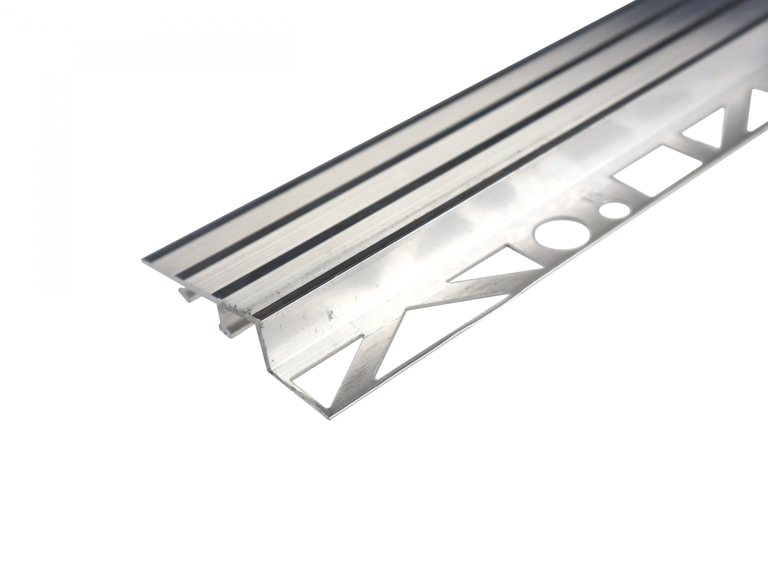 Edgeramp 21x103mm, Polished aluminium, Installation under the threshold. Lenght 2700mm