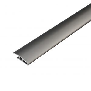 Dione edge trim with underrail. Silver anodized aluminium. Width 38 mm. For hard flooring materials height difference of 3,5-6,5 mm. For soft flooring materials height difference of 4-11mm. Length 3,000 mm.