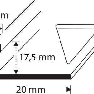 Stainless steel finishing profile furbishes tiled corners of the wall where the end of the tiling remains visible. Finishing profiles are also suitable for finalizing the cut edges of vinyl and carpet. The height of the trim is 17.5mm, and the length is 2500mm. Surface is shined.