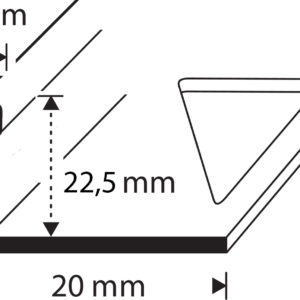 Stainless steel finishing profile furbishes tiled corners of the wall where the end of the tiling remains visible. Finishing profiles are also suitable for finalizing the cut edges of vinyl and carpet. The height of the trim is 22.5mm, and the length is 2500mm. Surface is shined.