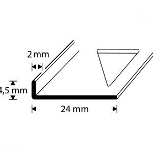 Aluminium finishing profile furbishes tiled corners of the wall where the end of the tiling remains visible. Finishing profiles are also suitable for finalizing the cut edges of vinyl and carpet. The height of the trim is 4.5mm, and the length is 2500mm. Colour: silver anodized.