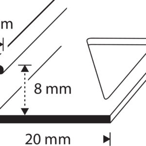 Brass finishing profile furbishes tiled corners of the wall where the end of the tiling remains visible. Finishing profiles are also suitable for finalizing the cut edges of vinyl and carpet. The height of the trim is 8mm, and the length is 2500mm.
