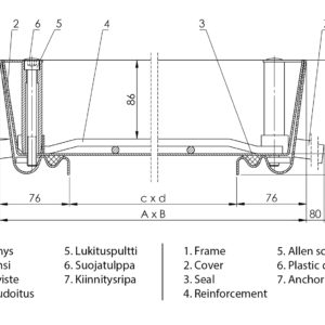 Access cover made of galvanized steel. The structure is galvanised after welding. 100mm deep cover can be filled with bricks, concrete slabs or garden and paving stones. Cover is gas- and Waterproof. The special seal withstands chemicals well. Conical design and lifting key creates a it easier to open the cover. Thanks to the small angles and accurately dimensioned edge structure, the cover is almost unnoticeable in the ground after installation. The door is fitted with internal reinforcing that improves its load endurance. Suitable for projects, which demands gas- and waterproof access doors, in indoor and outdoor use. Load endurace 125kN.