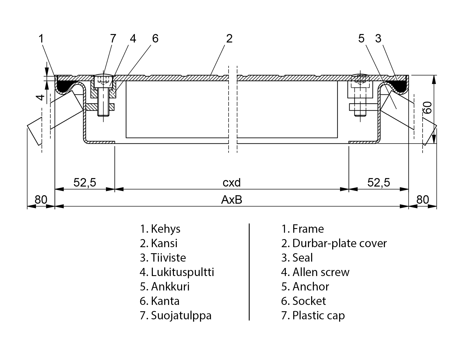 Access cover, galvanized steel. Coverplate has checker-pattern to reduce slipping. For in- and outdoor use. Load endurance 15kN