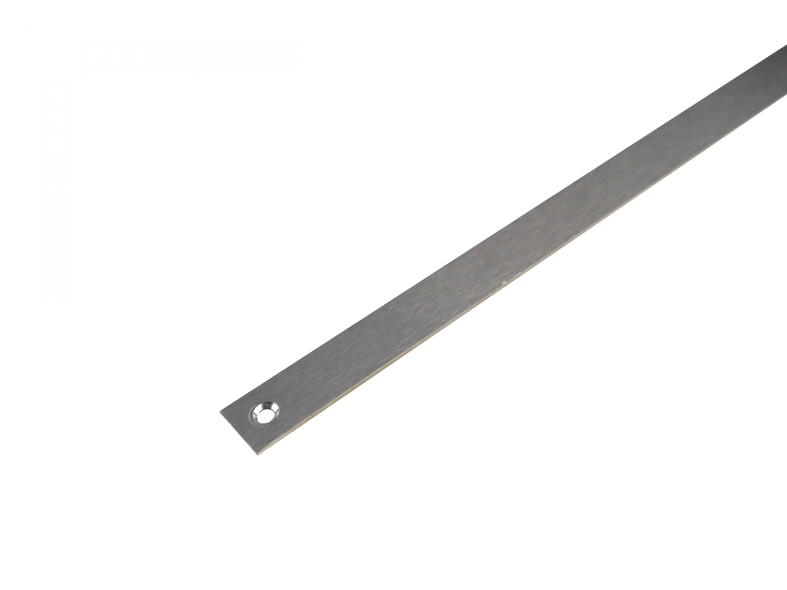 Guidance strip 20mm, Stainless steel grade 304. Brushed surface treatment. Pre-drilled holes for screws. Lenght 3000mm