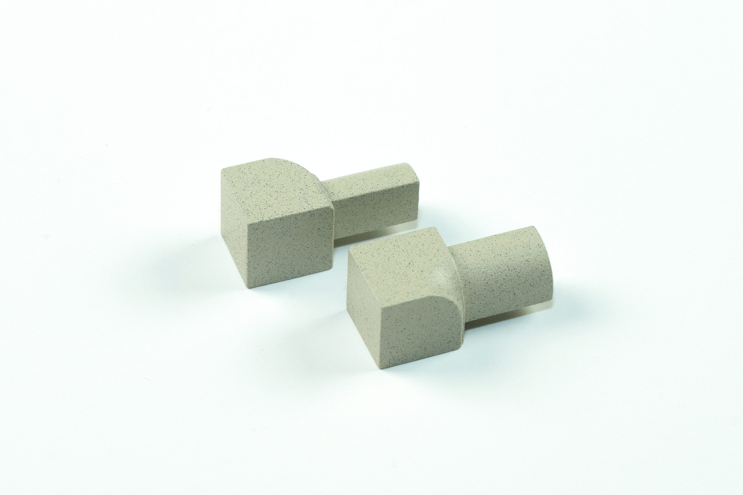 Aluminium inner corner piece removes the need of cutting the tile trim diagonally. Corner piece is suitable for connecting tile trims in inside corner. Colour: Sand rustic. Product is compatible with round 12mm Aluminium tile trim.