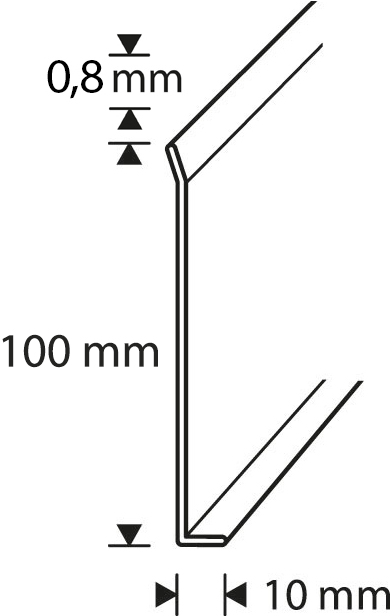 Stainless steel skirting. Height 100mm, width from wall 10mm. Abrasion resistant skirting-trim. length 3,000mm