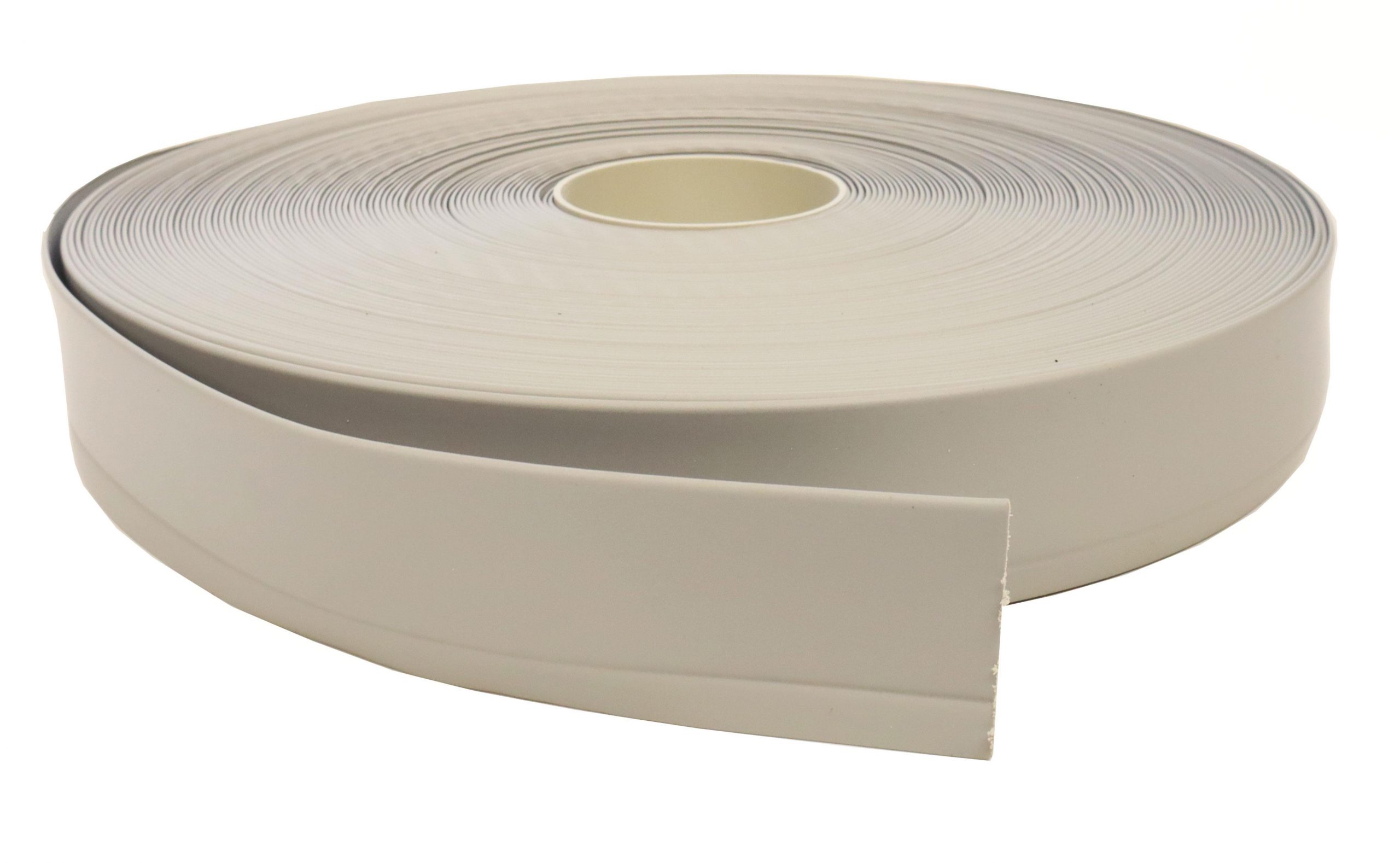 Plastic skirting. Colour light grey. Height 40mm, width 10mm. Abrasion resistant skirting-trim for indoor use. Sold in 50 meter roll.