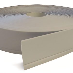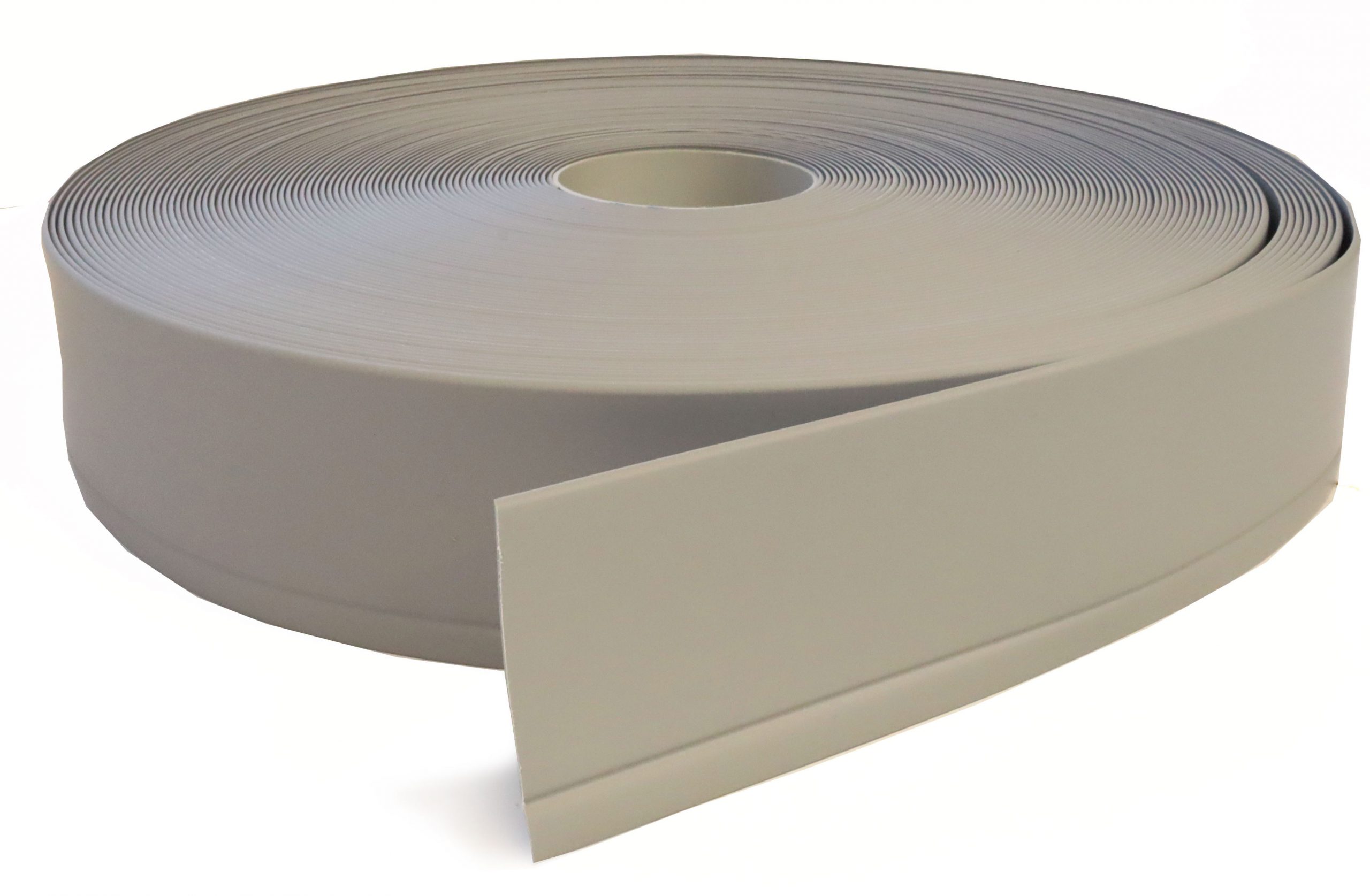 Plastic skirting. Colour light grey. Height 60mm, width 10mm. Abrasion resistant skirting-trim for indoor use. Sold in 50 meter roll.