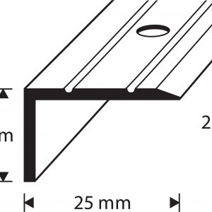 Dione stair nosing with screw fastening. Grooved surface. Width 25 mm. Height 15 mm. Polished brass. Length 900 mm.