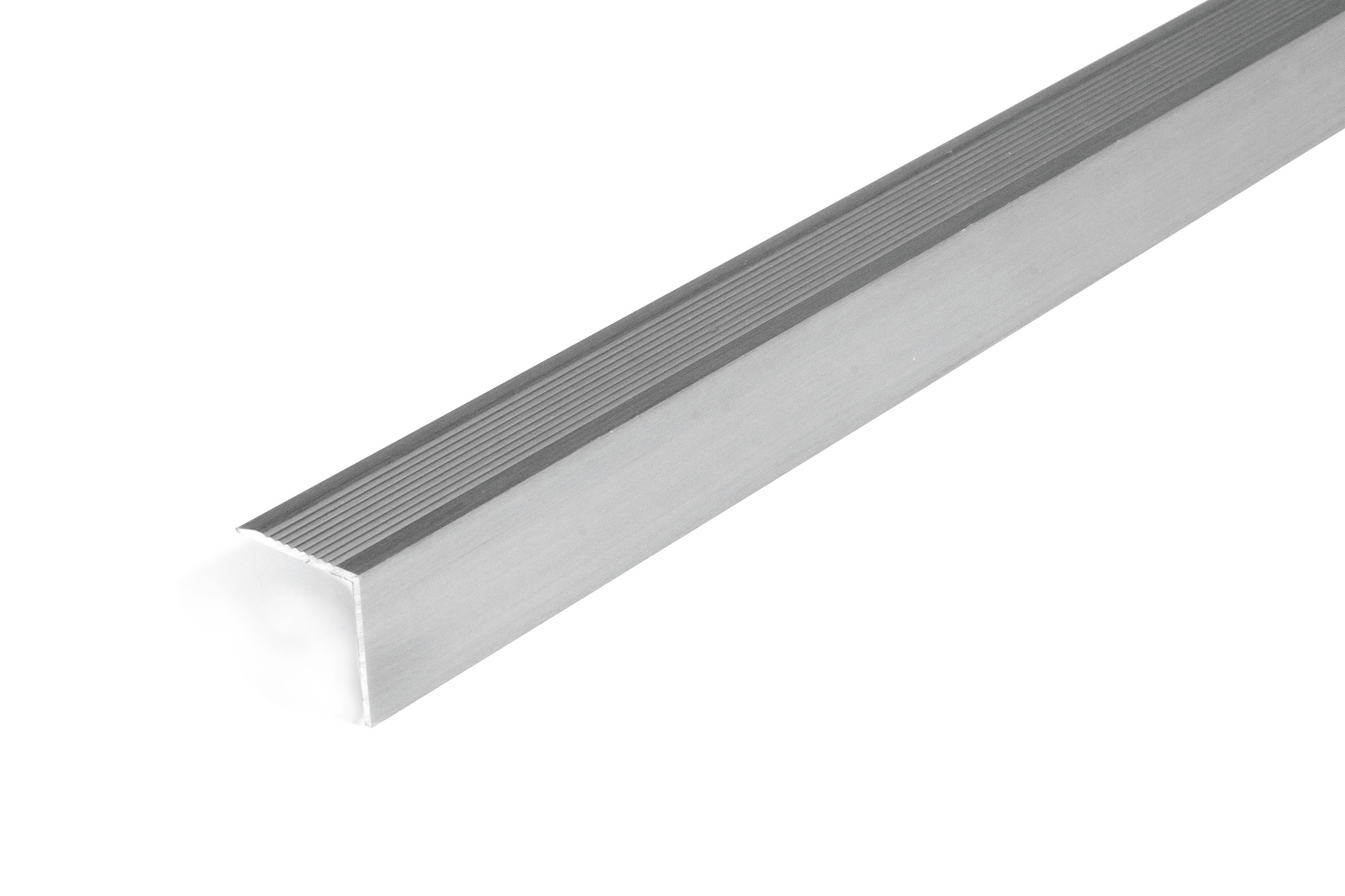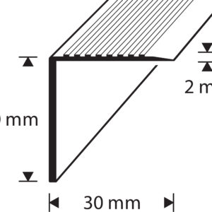 Dione stair nosing with glue fastening. Grooved surface. Width 30 mm. Height 30 mm. Aluminium. Nordic Graphite. Length 3,000 mm.