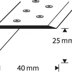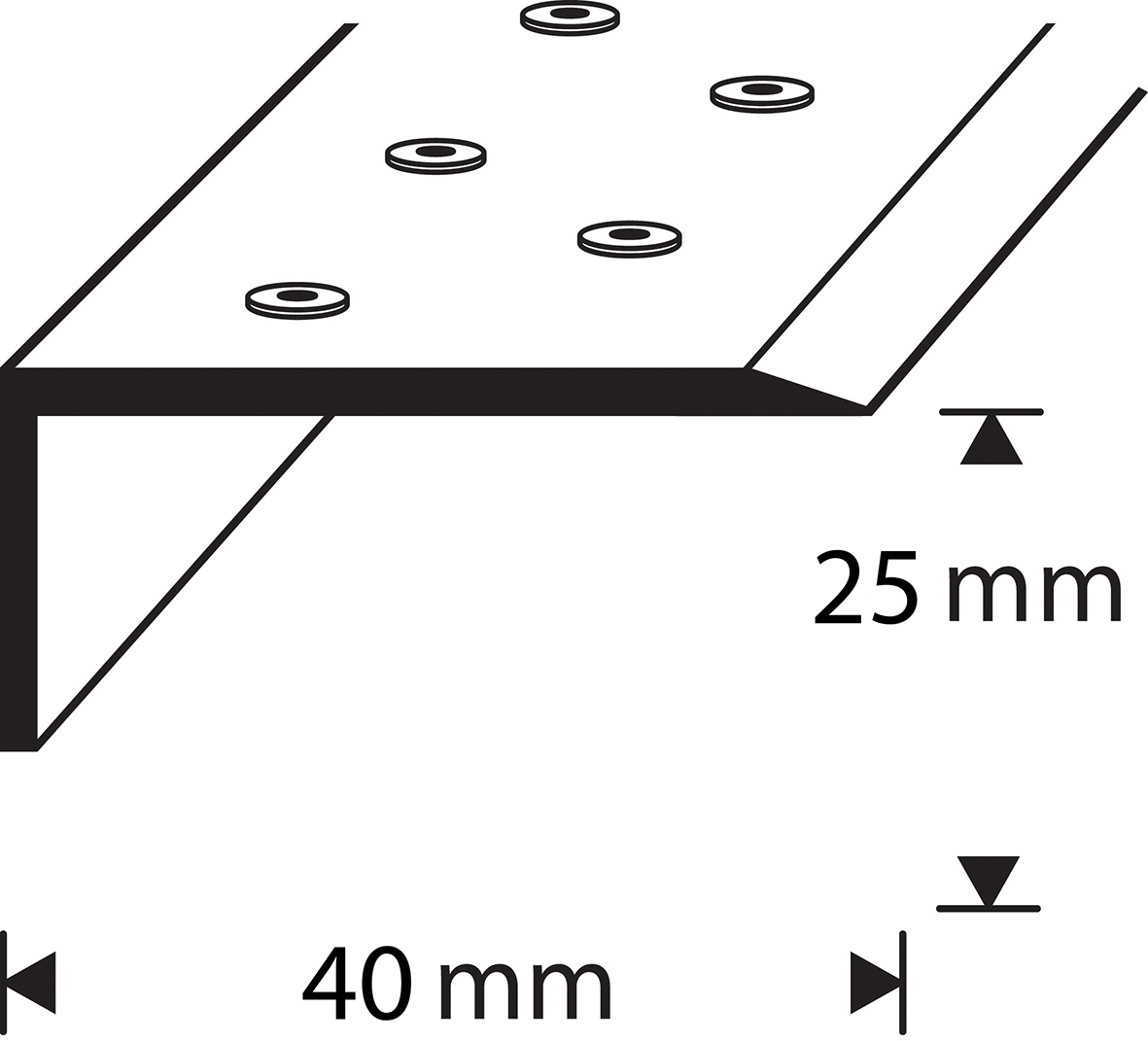 Dione stair nosing with glue fastening. Smooth surface. Width 40 mm. Height 25 mm. Brushed stainless steel. Length 3,000 mm.