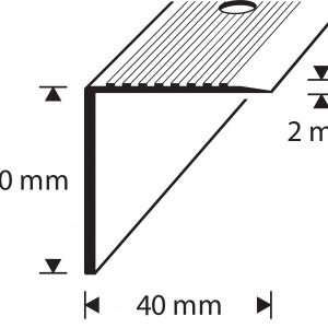 Dione stair nosing with screw fastening. Grooved surface. Width 40 mm. Height 40 mm. Silver anodized aluminium. Length 900 mm.