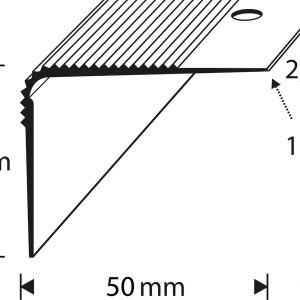 Dione stair nosing with screw fastening. Grooved surface. Width 50 mm. Height 43 mm. Polished brass. Length 5,000 mm.