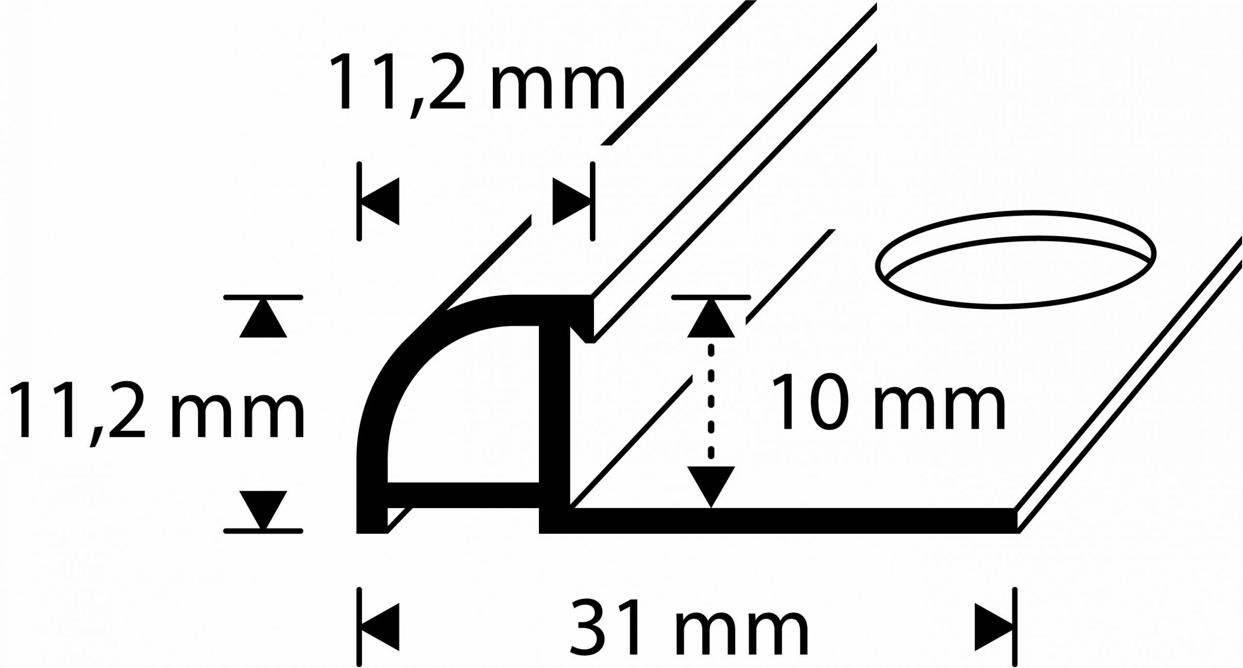 Aluminium Tile trim, Colour White, round, height 10mm, length 2700mm