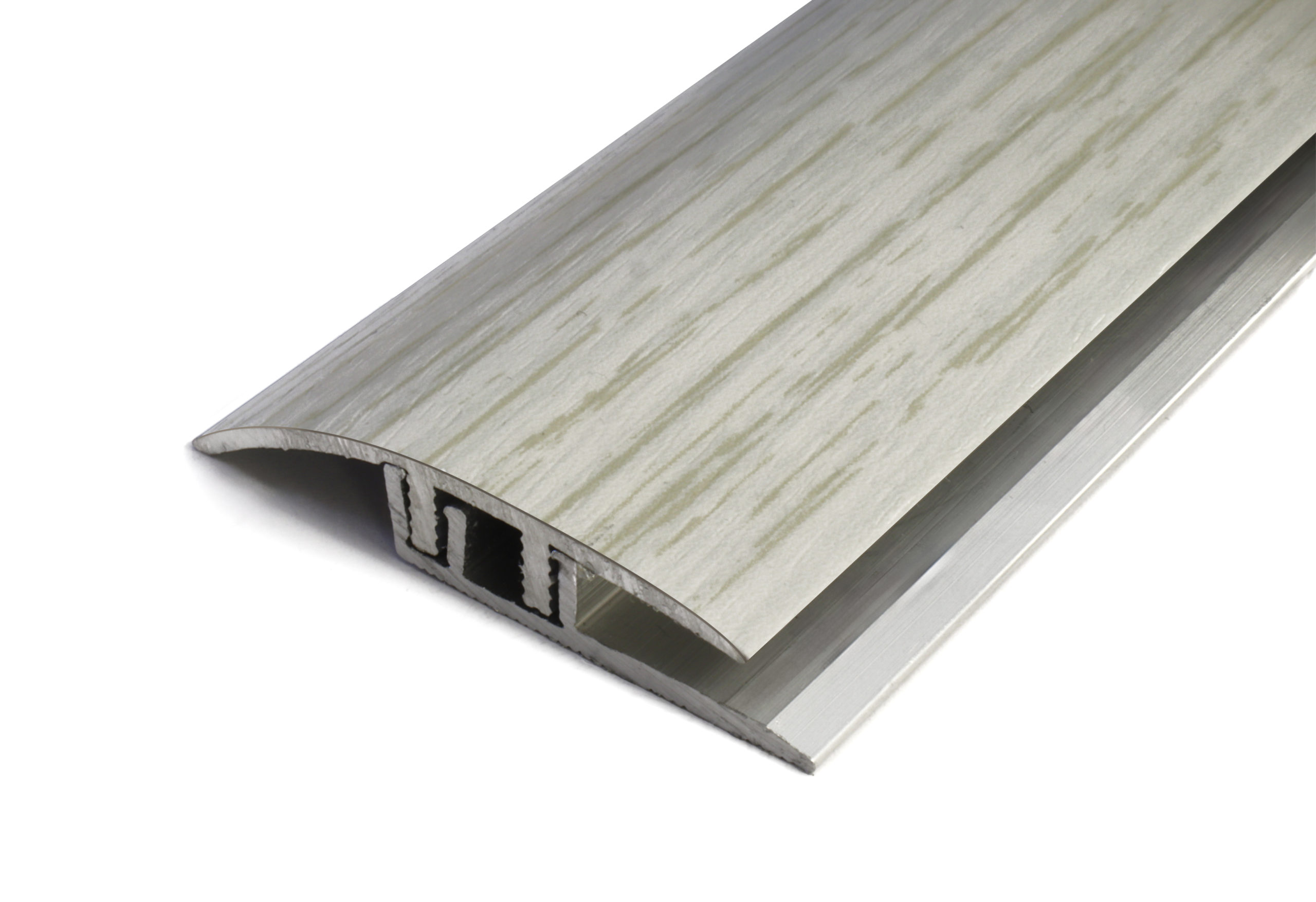 Eritasolista vinyylille, Leveys 38mm. Väri Harmaa tammi, koville lattiamateriaaleille tasoero on 3,5-6,5mm. Pehmeille lattiamateriaaleille tasoero on 4-11mm. Pituus 3000mm