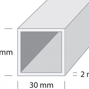 Hobby-neliöputki. 30x30x2mm. Alumiini, valkoinen 2000mm