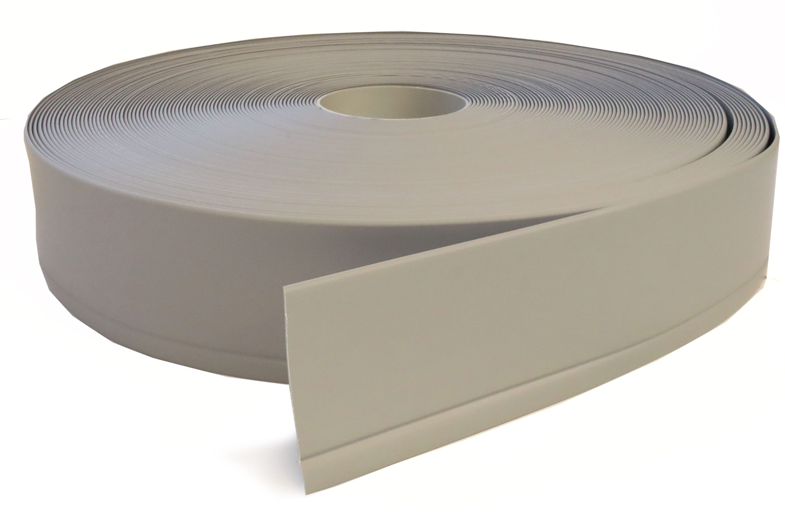Jalkalista teippikiinnityksellä, muovia. Väri Vaalean harmaa. Korkeus 60mm, jalan leveys 10mm. Kulutusta kestävä jalkalista sisäkäyttöön. Rullassa 50 metriä.