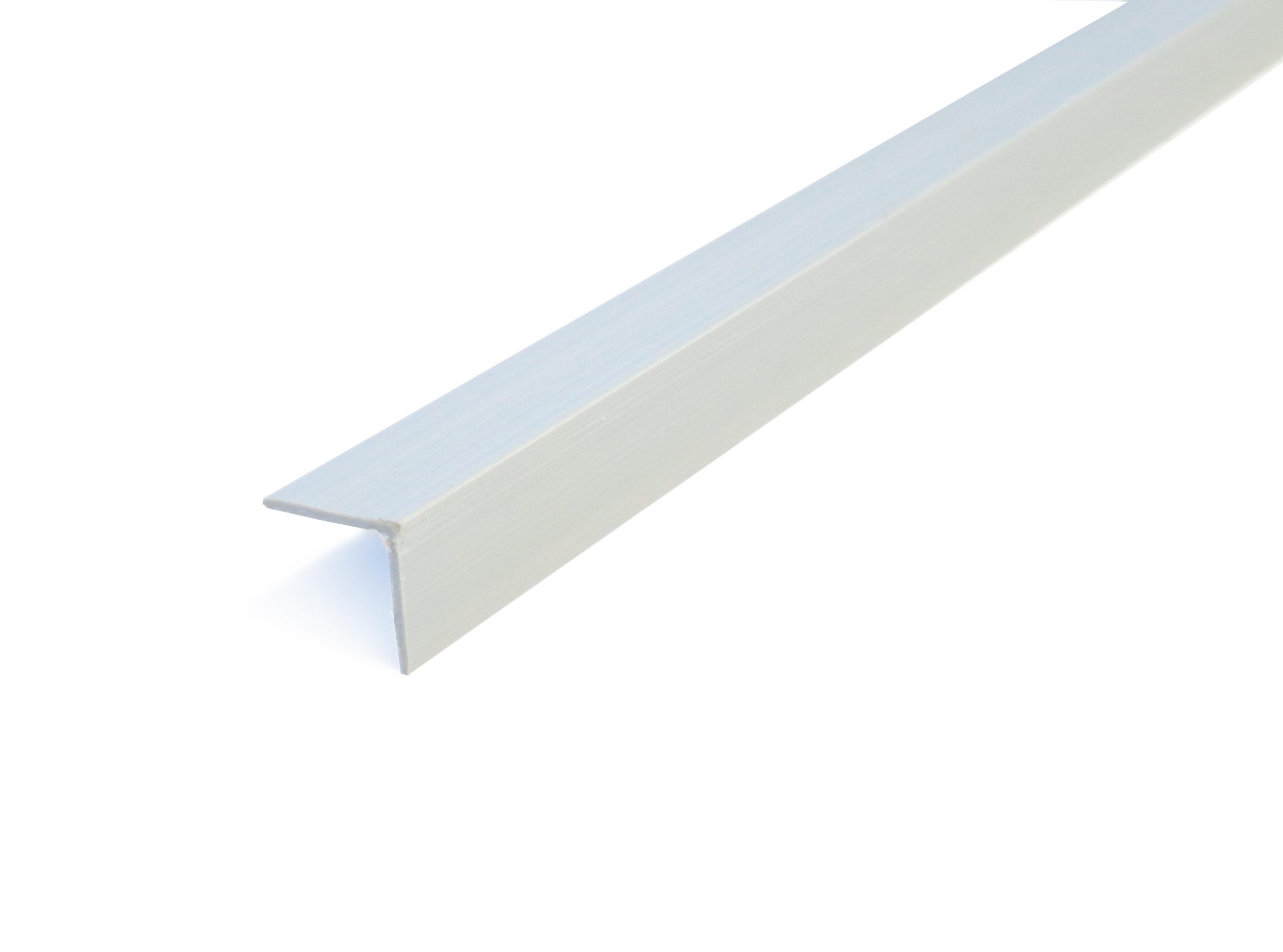 Kulmasuojalista. Liimakiinnityksellä. Leveys 15mm, korkeus 15mm. Muovi. Vaalean harmaa. Pituus 2700mm