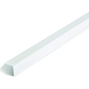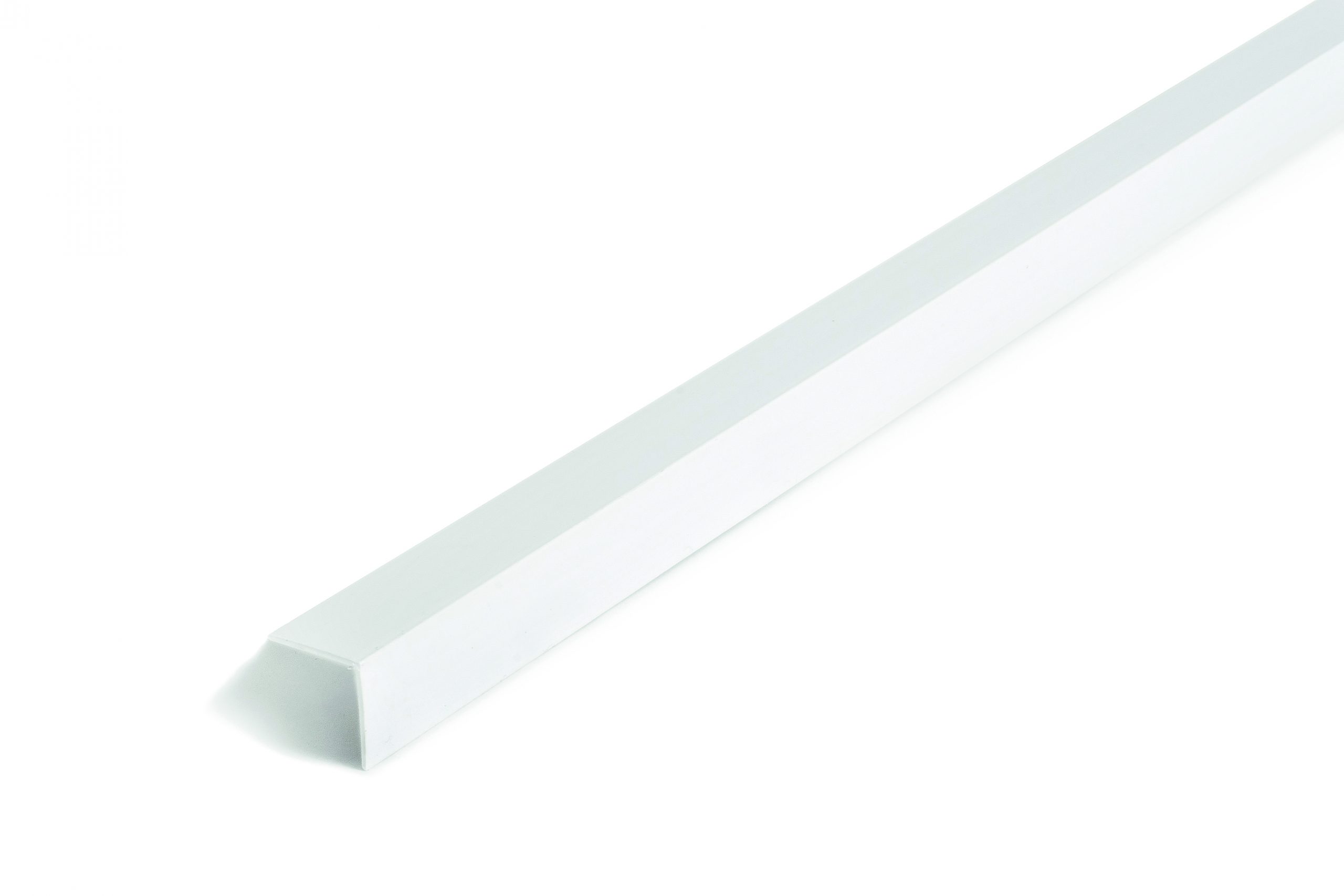 Kulmasuojalista. Liimakiinnityksellä. Leveys 15mm, korkeus 15mm. Muovi. Valkoinen. Pituus 2700mm