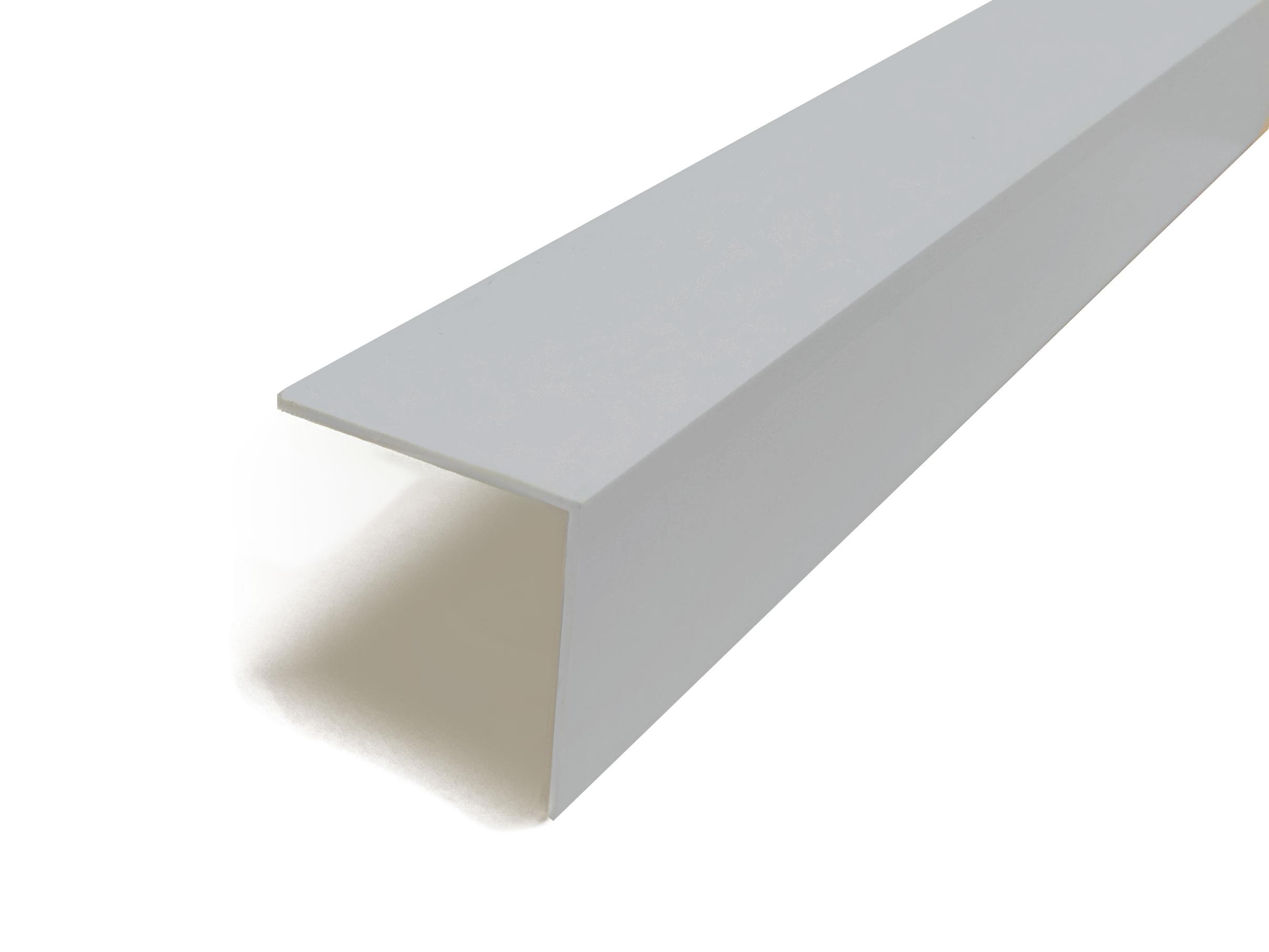Kulmasuojalista. Liimakiinnityksellä. Leveys 20mm, korkeus 20mm. Muovi. Vaalean harmaa. Pituus 2700mm