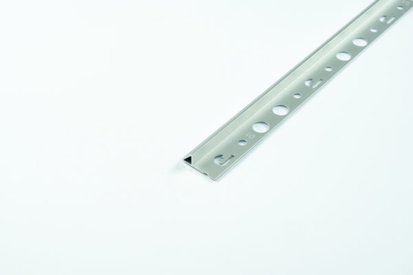 Dione-Laattalista alumiinia, väri Hopea-anodisoitu, 45 asteen kulma, korkeus 8mm. Pituus 2700mm