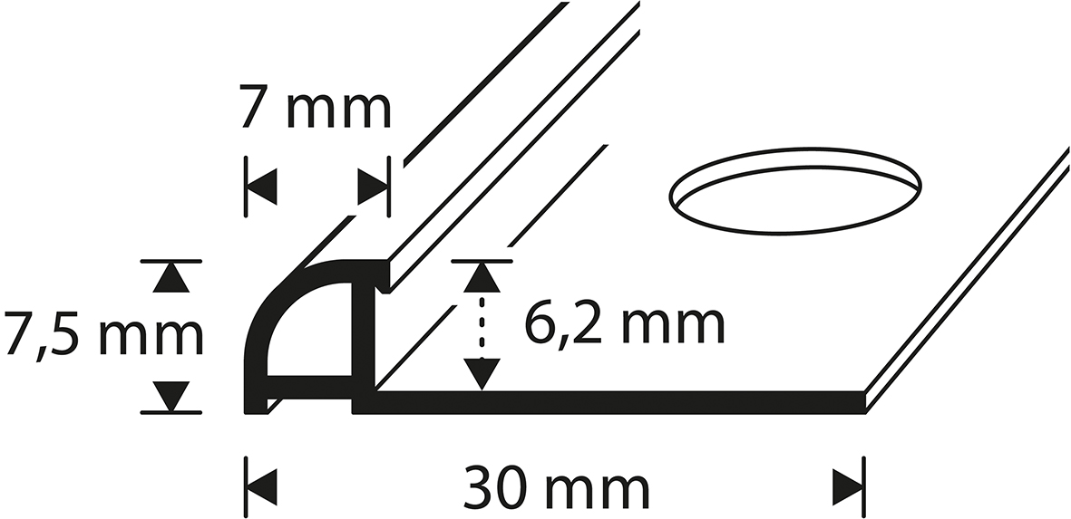 Dione-Laattalista, muovia, väri Valkoinen, pyöreä, korkeus 6mm. Pituus 2700mm