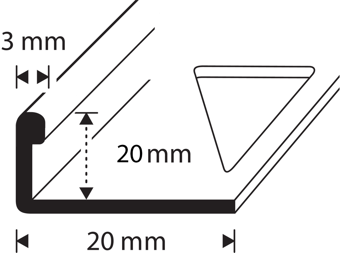 Dione-päätelista, RST, Kiiltävä, korkeus 20mm. Pituus 2500mm