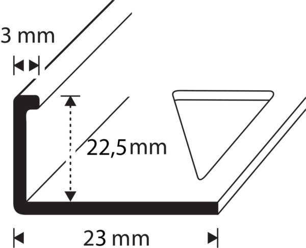 Dione-päätelista, Messinki, Käsittelemätön, korkeus 22,5mm. Pituus 2500mm