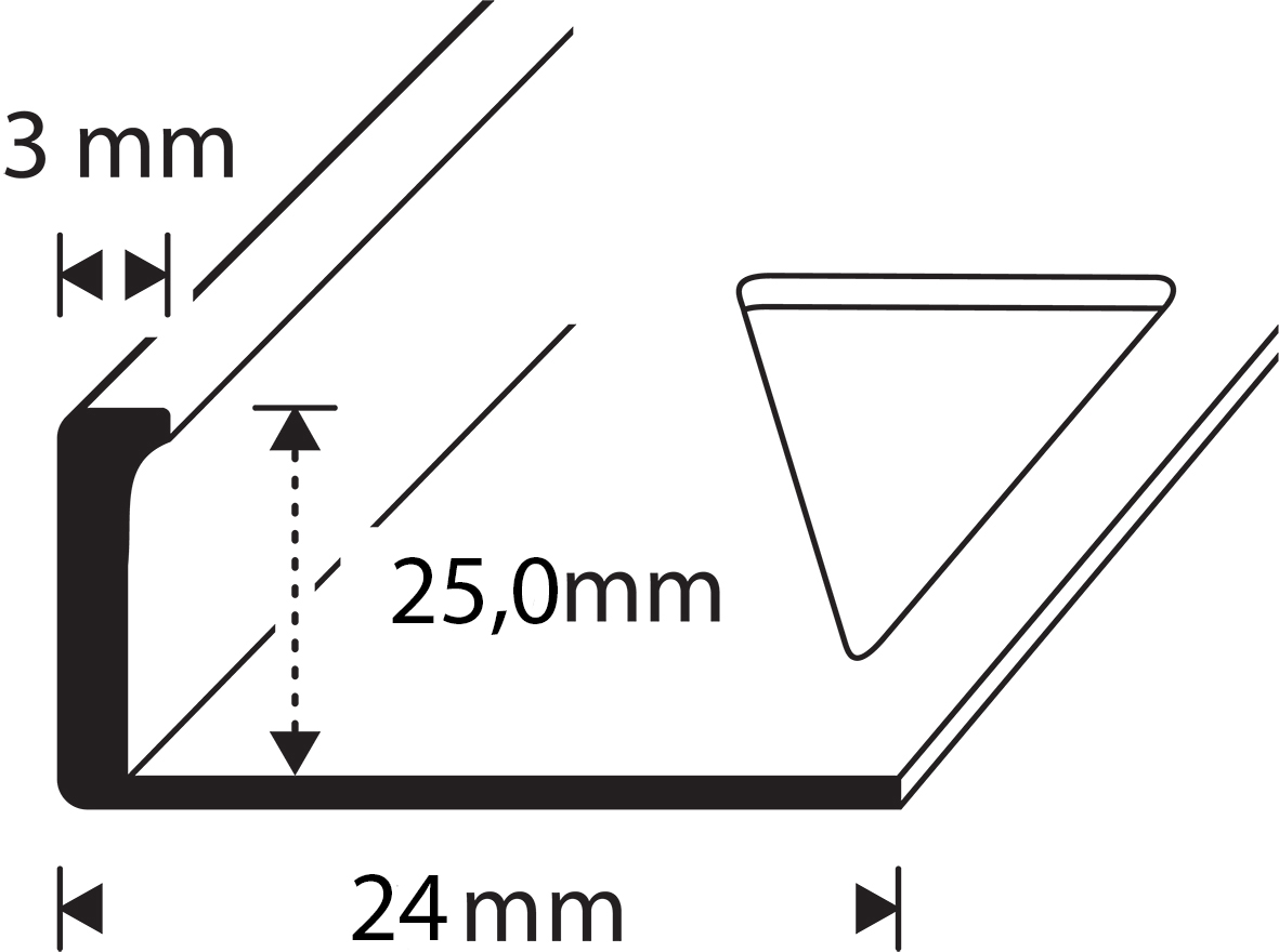 LAATTAPÄÄTELISTA 25MM HOPEA ANODISOITU ALUMIINI 2500MM