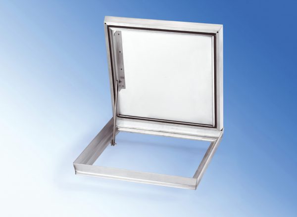 Alumiiniluukku, kaasu- ja vesitiivis. Saranoitu, kevyellä komposiitilla esitäytetty kansi. Sisäkäyttöön. Kuormituksen kesto 15kN.