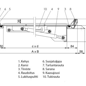 Revīzijas lūka, izgatavota no cinkota tērauda. Aprīkota ar gāzes atsperēm. Gāzu un ūdensdroša. Lietošanai telpās un ārā. Celtspēja: 125 kN.