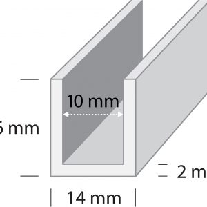 HOBBY U-PROFILS 14X16X2MM BALTS 1000MM