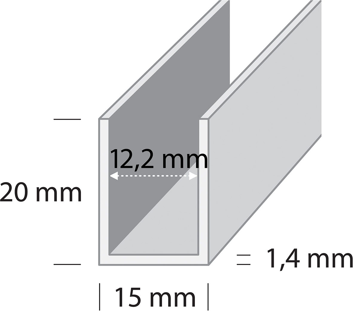 HOBBY U-PROFILS 15X20X1,4MM SUDRABS 1000MM